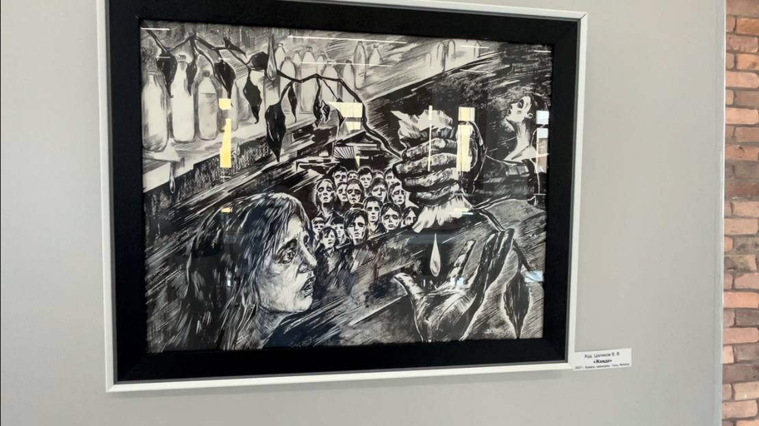 На экспозицию я попала, пройдя через бывший спортивный зал, который сам по себе мощнейшее потрясение каждый раз. Затем нужно было пройти через коридоры и бывшие классы, где все стены усеяны следами пуль. Я вспоминала десятки прочитанных и услышанных мной из первых уст историй из этих комнат. После всего этого ты вдруг оказываешься в новом чистом зале и рассматриваешь графику со спецназовцами. Сложные чувства.