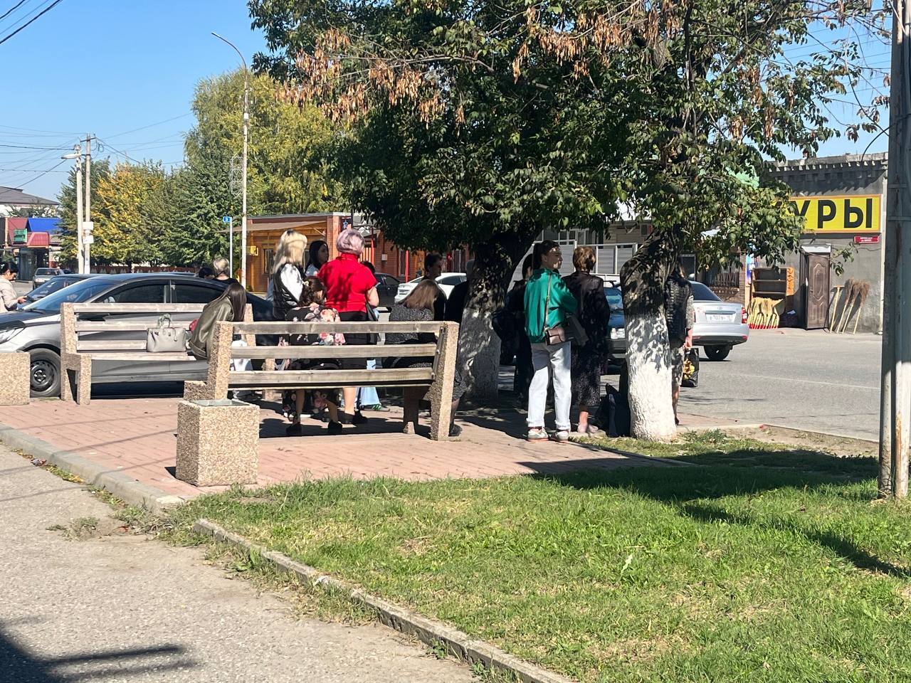 Но маршрутка не приезжает к назначенному времени, поэтому толпа продолжает стоять и увеличиваться. Из колонок объявляют о чьих-то сорокадневнных поминках. Уточняют, что это сын такого-то и племянник тех-то. Говорят только на осетинском. Честно говоря, впервые такой формат извещений наблюдала - видимо, газеты уже никто не читает, а мессенджеры ещё не все освоили, поэтому это самый удобный формат для сельчан.