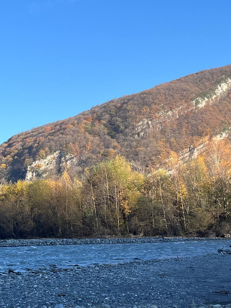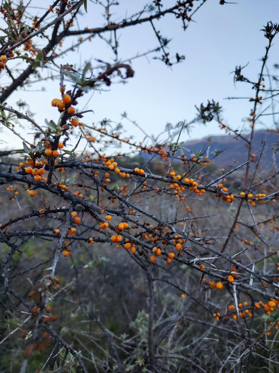 Тут, вдоль военно-грузинской дороги вдоль Терека много зарослей облепихи, которую обычно собирают в октябре.