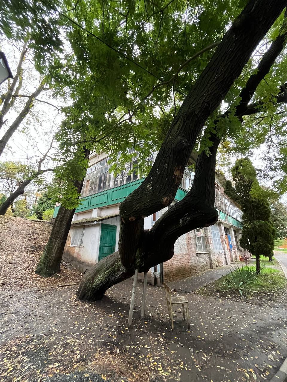 Тут деревья не то что не обрезают под корень, им ещё и такие подпорки делают.