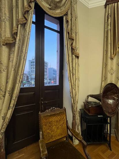 Из старых интерьеров открывается вид на советское здание: