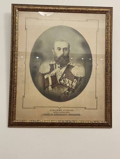 Много экспонатов посвящено Терскому казачеству. Генерал-лейтенант Смекалов дворянин по происхождению, которого направили на Кавказ наказным атаманом в последние годы Кавказской войны на усмирение мятежных горцев: