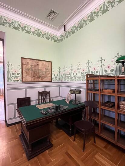 На первом этаже сохранились кабинеты издательства "Терек" и "Казбек". На стенах тот же рисунок, что и был раньше: