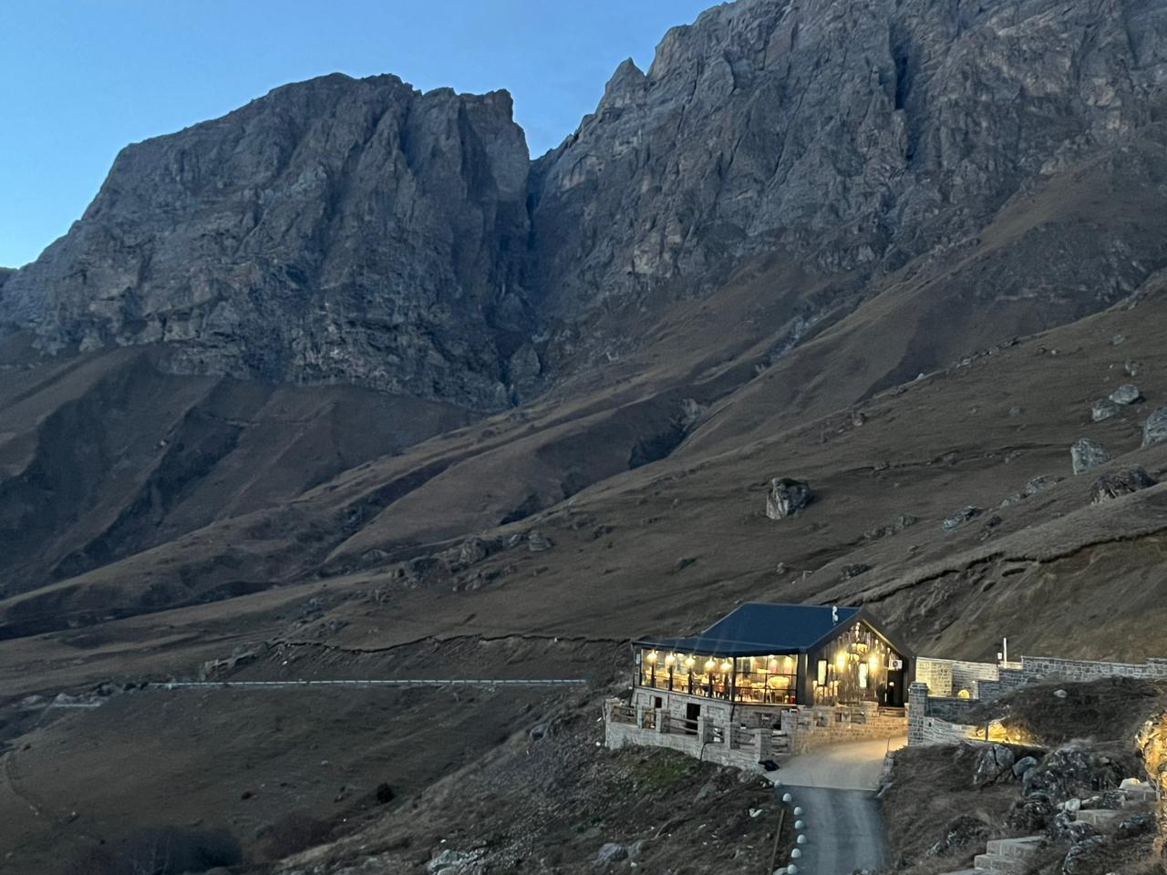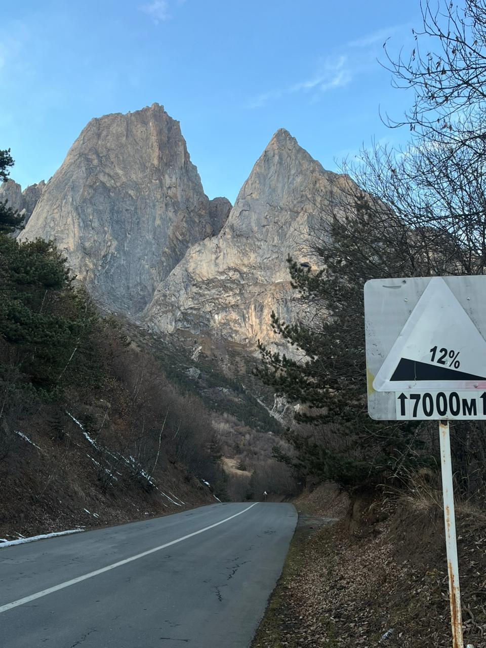 Тут есть смотровая площадка, кафе и скоро будет гостиница. У кафе отзывы были не самые лучшие, поэтому я не ожидала многого, но повезло - еду принесли быстро, а обслуживание было очень приятным. Заказала ингушский национальный суп, названия уже не вспомню, оказалось, что это обычный суп из картошки и мяса, такой же суп у осетин тоже почему-то выдаётся на национальную особенность и называется лывза. Цены тут чуточку выше обычного, но учитывая, что других кафе рядом нет, а вид тут прекрасный - совсем не дорого.