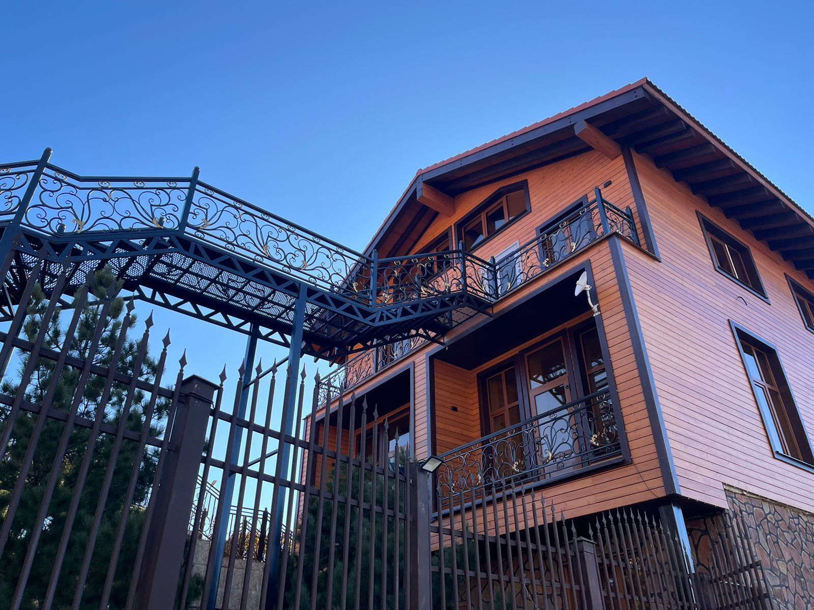 Смотровая находится в частных владениях, это огромная территория, застроенная гостевыми домами, есть своя мечеть и даже вертолётная площадка. Видимо, паспорт показывать на посту не надо, если летишь сюда на вертолёте. Однако, номера тут не сдаются, всё хозяйство только для отдыха родственников Куштова. Видимо, того самого бизнесмена, который известен нам всем по новостям.