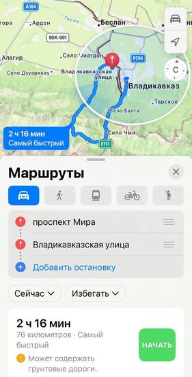 Вот как сейчас лагают гугл карты - так строит маршрут гугл с проспекта Мира до улицы Владикавказской. Предлагает шесть километров растянуть на семьдесят шесть и ехать туда два часа, заботливо предупреждая о грунтовых дорогах на пути.
