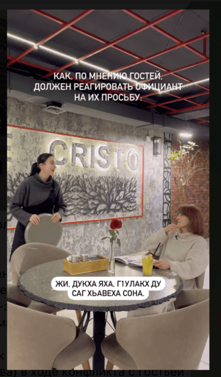 Клиентка возмущается такому ответу, потому что он показался ей «грубым». Из-за чего официантка подходит к ней и говорит: