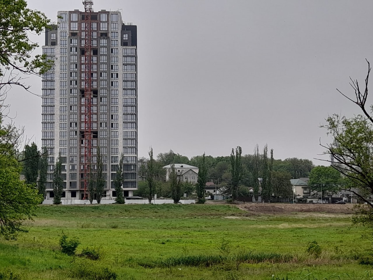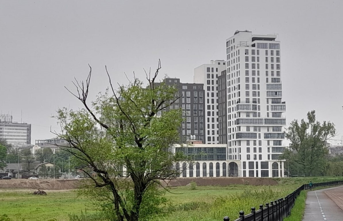 Многоэтажный жилой комплекс на берегу высохшего озера