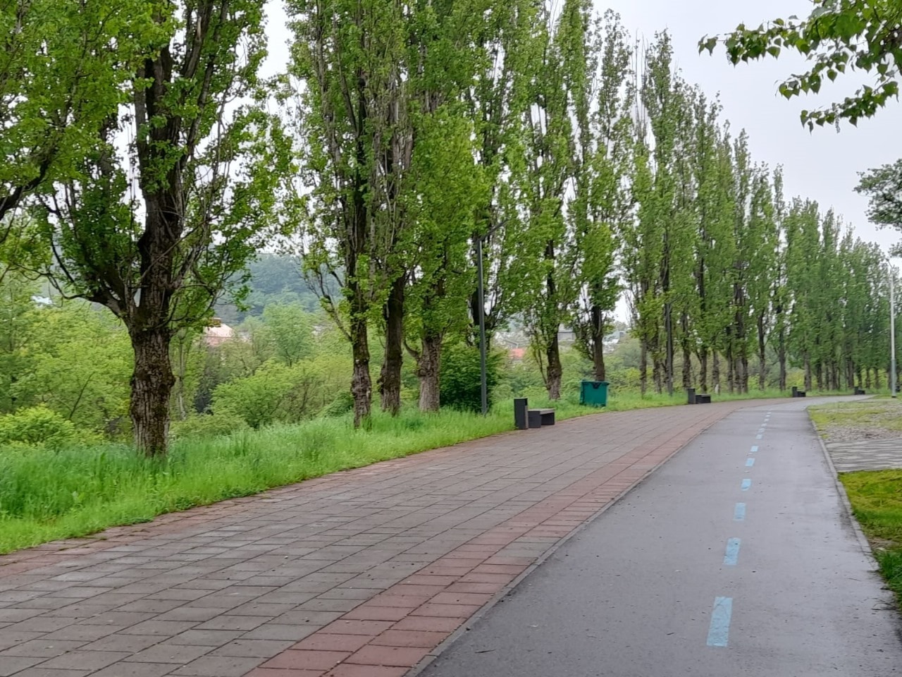 Из хорошего. Вдоль реки проложена дорожка с велотреком, установлен бивуар с минеральной водой. Это хорошо, однако оставшаяся часть парка также требует обустройства, ну просто напрашивается.