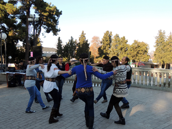 И сегодня, в Степанакерте, на "Пятачке", группа "Арцахская народная музыкальная инициатива" провела выступление - исполнили несколько номеров различных армянских народных танцев. По окончании концерта, они пригласили желающих, вне зависимости от возраста, вместе станцевать, научить их правильно танцевать армянские народные танцы, что с удовольствием зрители сделали...