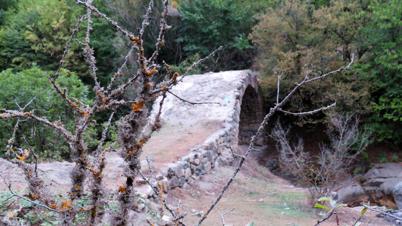 Когда мы вышли из села, то спустились на моей машине к речке. Проехали километров 3-4 и попали в другой мир: небольшая речка, чистая вода в ней, родники, лес и красивый старинный мост Джаварнеса (12-13 вв.). Старинные мосты моя слабость, мне приятно, интересно смотреть на них, узнать их возраст и представить, сколько людей за эти века ими пользовались... Как-то я даже выставил пост по старинным мостам Карабаха, вот ссылка, если кто не видел: