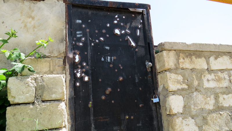 После школы я попросил Мишу Гюрджяна проехаться по Мартакерту, показать разрушения. «В Мартакерте пострадало 17 домов, остальные, некоторые разрушены полностью, некоторые частично – выбиты двери, стёкла. Население возвращается, заново обустраивается. Четыре дома уже полностью восстановлены, остальные на очереди, по плану будут восстановлены. Государство нам помогает в этом деле, без этого было бы очень трудно» - сказал г-н Гюрджян. Мы подъехали к такому дому, где Гюрджян показал место, куда, рядом с домом, попал артиллерийский снаряд, нанесший большой ущерб.