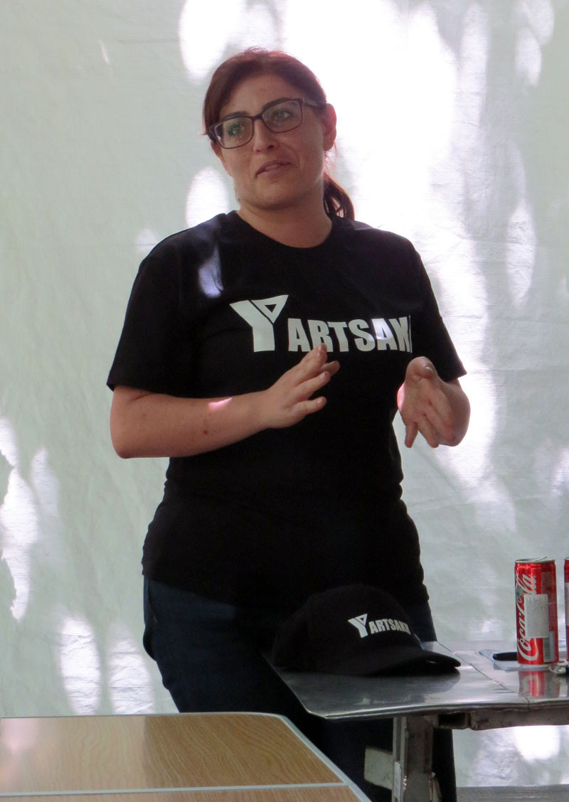 Айкуи Карапетян, представитель YMCA Армении задаёт вопрос депутату НС НКР Дадвиду Мелкумяну.
