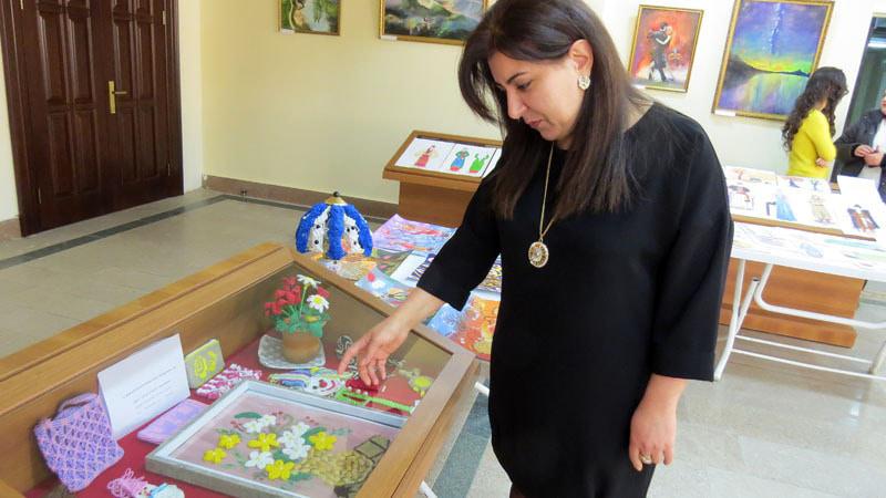 Гаяне Азизян, жена военнослужащего, показывает работы своих детей.