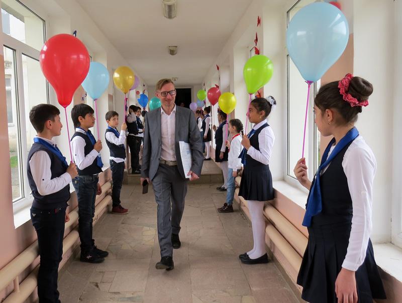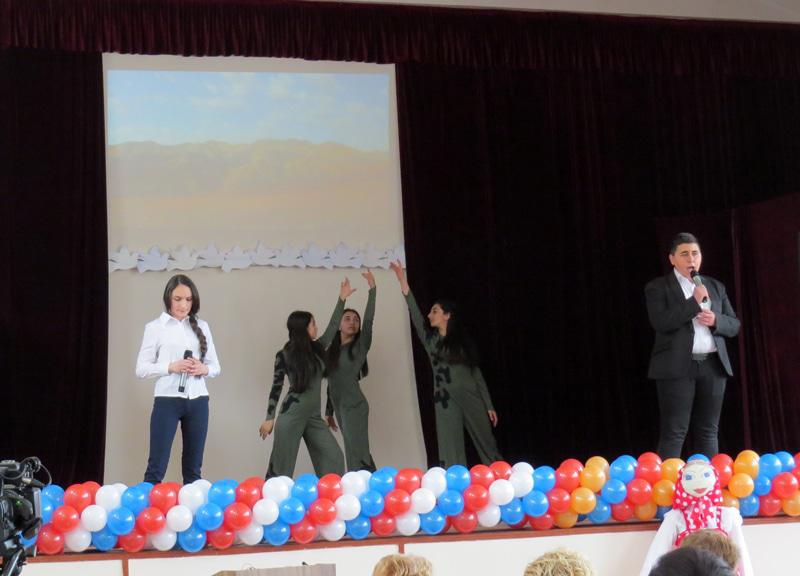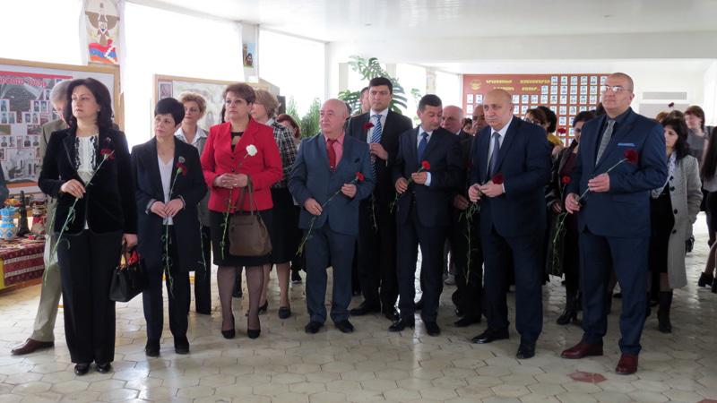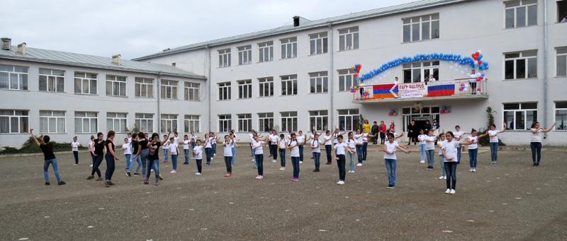 Детишки школы встретили гостей прекрасным флешмобом, звучали армянские и русские песни. После этого гостей встретили хлебом и солью. В холле школы, гости и участники мероприятия возложили цветы к стенду, где висели фотографии погибших в Карабахской войне...