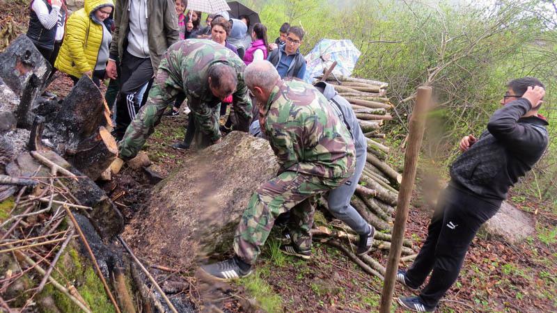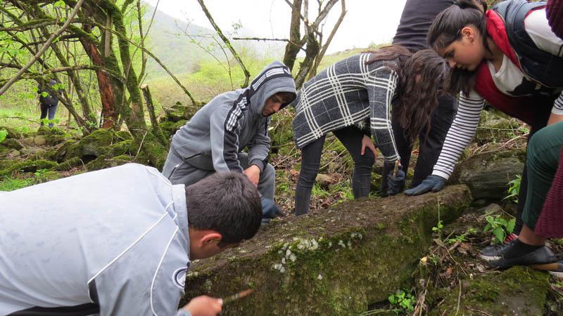 Пошёл мокрый снег, похожий на дождь, но он не смог сорвать задуманное: дети, «засучив» рукава, не смотря на холод и грязь, начали работать. Также, как и в прошлый раз, педагог истории Лусине Хачатрян, наравне с детьми, одев перчатки, очищала хачкары от мха и грязи, по ходу рассказывая историю нашего края. Мужчины с мальчиками начали поднимать хачкары...