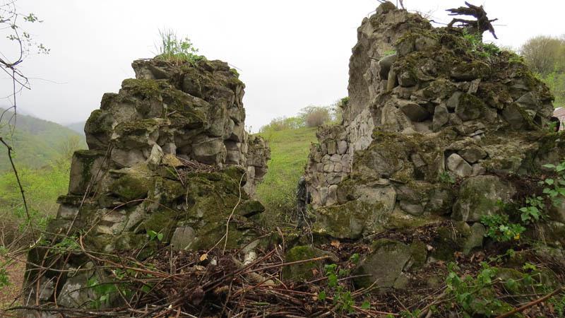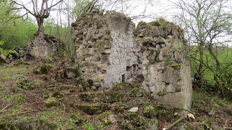 Погода была пасмурная, но мы решили поехать, не смотря ни на что. Как и в прошлые разы, нас сопровождали проводники: работник отдела Аллы Вреж и житель села Патара Мгер. Выехав с дороги, мы углубились в Патаринский лес. Километров через пять мы сошли с автобуса и начали подниматься в гору, где скоро нашему взору открылась церковь «Чохтак ехци», а точнее то, что осталось от некогда красивого культового здания...