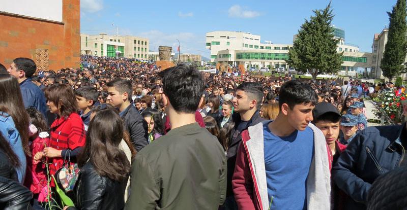 Каждый год в Степанакерте и других населённых пунктах республики отмечается эта скорбная дата. Во всех райцентрах стоят памятники невинным жертвам Геноцида и люди, также как и Степанакерте, идут почтить память жертв Геноцида...