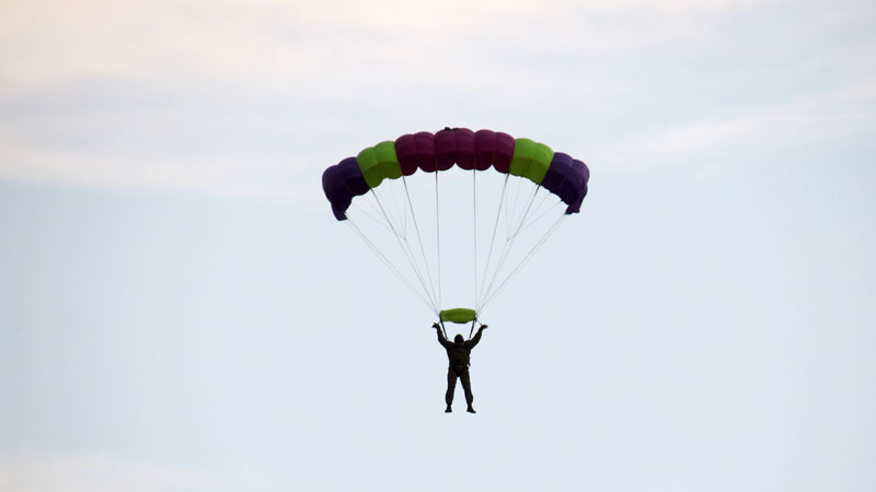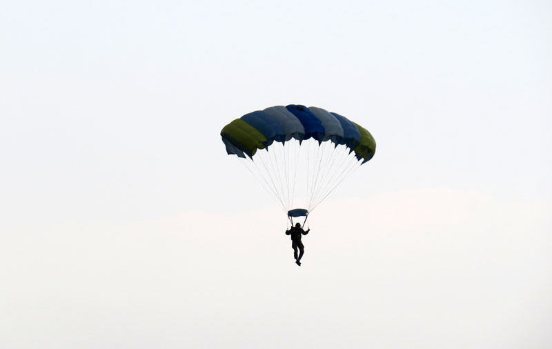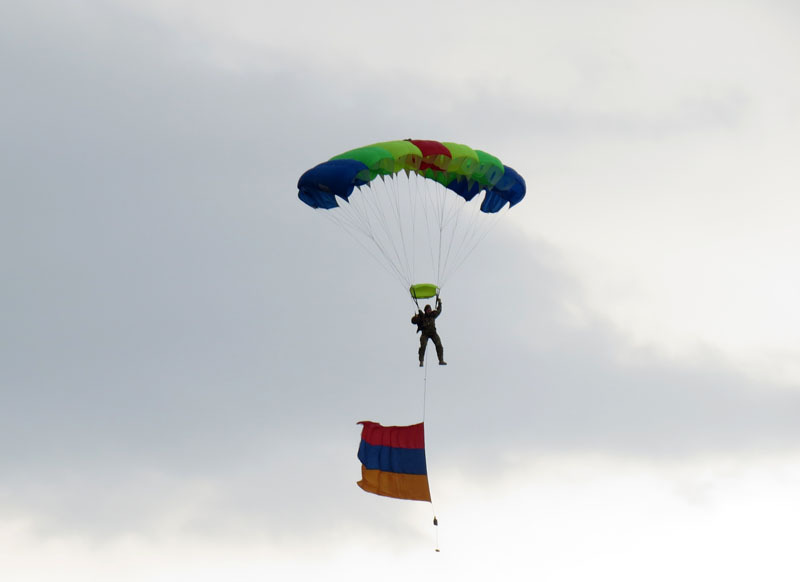 Фестиваль «Арцах Эйрфест». Высоко в небо поднялся военный вертолёт и от него начали отделяться маленькие фигурки парашютистов...