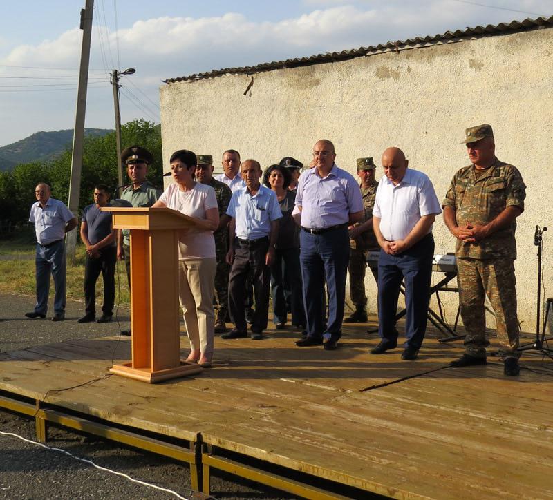 Участников лагеря приветствует министр образования Арцаха Нарине Агабалян.
