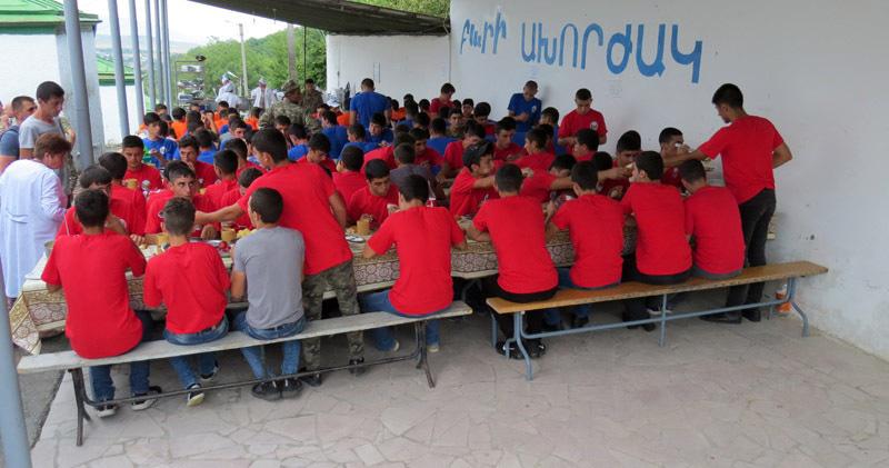 В этом потоке все офицеры – военруки школ Мартунинского района. Есть у нас начфиз, замполит, зампотылу. Естественно, с детьми мы проводим экскурсии по Арцаху. Организаторами этого лагеря являются министерства образования и обороны», - чётко, по-военному объяснил мне начальник лагеря майор Арутюнян.