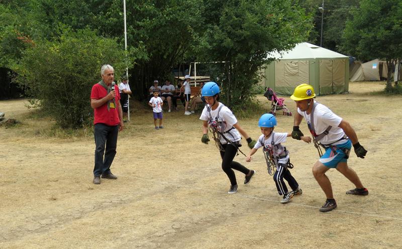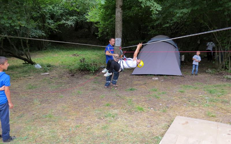 Днём было организовано туристическое соревнование «Прохождение этапов препятствий». А препятствия - это кочки, параллельная, маятник, навесная, бревно, перенос пострадавшего.