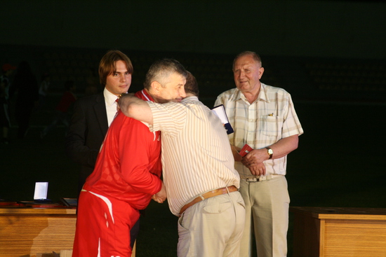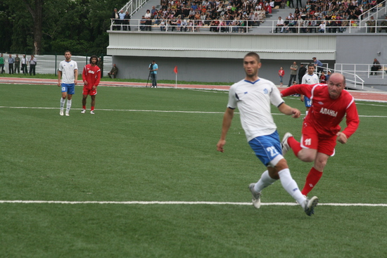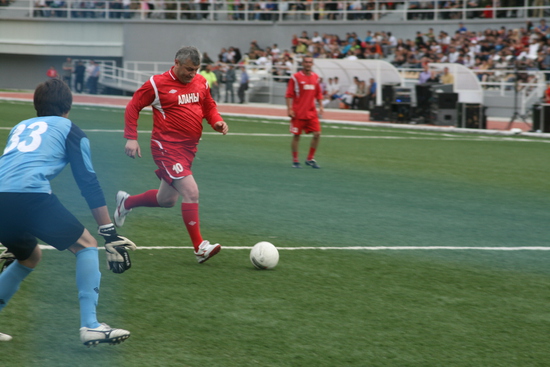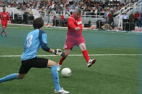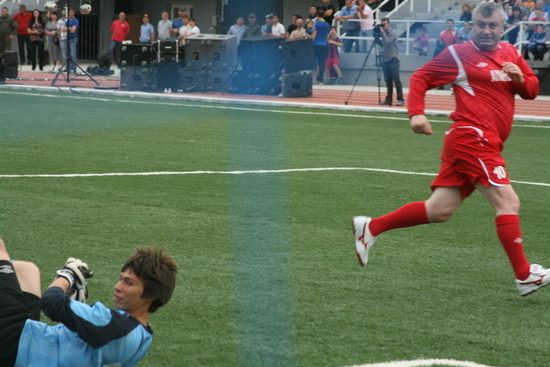 дальше сам матч. особо про него сказать нечего, погоняли мяч на радость публике, Президент несколько раз уходил с поля и возвращался, в общем был активен и забил два или три гола. общий счет 7:7.