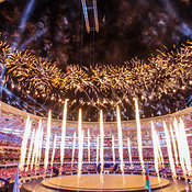 Торжественная церемония закрытия I Европейских игр состоялась вечером 28 июня на Бакинском олимпийском стадионе с участием 68 тыс. зрителей. По данным организаторов, за представлением наблюдали также около 800 млн. зрителей по всему миру.