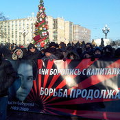 Акции памяти убитых в Москве адвоката Станислава Маркелова и журналистки Анастасии Бабуровой прошли сегодня в Москве. Их участники возложили цветы к месту убийства и прошли шествием по центру города, выкрикивая антифашистские лозунги. По данным полиции, в шествии участвовали 450 человек.