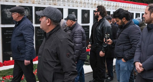 НАСТОЯЩИЙ МАТЕРИАЛ (ИНФОРМАЦИЯ) ПРОИЗВЕДЕН И РАСПРОСТРАНЕН ИНОСТРАННЫМ АГЕНТОМ ООО "МЕМО", ЛИБО КАСАЕТСЯ ДЕЯТЕЛЬНОСТИ ИНОСТРАННОГО АГЕНТА ООО "МЕМО". Бакинцы в 35-ю годовщину ввода советских войск в город пришли к мемориалу на Аллее шехидов, чт...