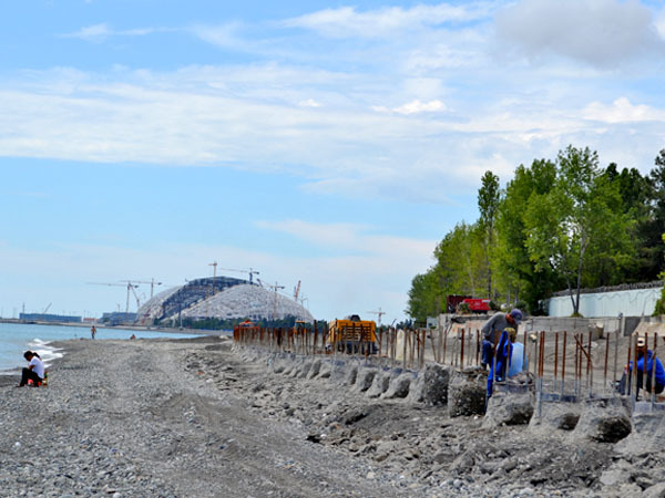 В Сочи вдоль берега моря от устья реки Мзымта до реки Псоу ведутся работы по возведению берегоукрепления Имеретинской низменности. 8 июня 2013 г. Фоторепортаж корреспондента "Кавказского узла" Светланы Кравченко