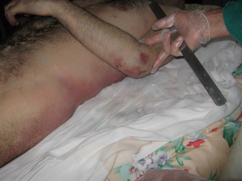 Фотографии тела Тархана Картоева, умершего спустя неделю после прибытия в ИК-2 Екатеринбурга. Снимки сделаны одним из братьев Тархана Картоева 2 июля 2013 г. во время экспертизы в Центральной клинической больнице Назрани.
