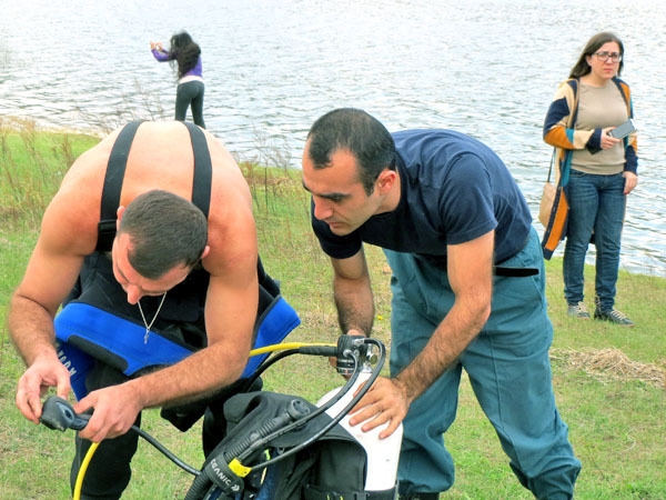 Спасательная служба Нагорного Карабаха приняла участие в акции по очистке водоемов от мусора. Мартакертский район, Сарсангское водохранилище, 29 сентября 2013 г. Фоторепортаж корреспондента "Кавказского узла" Алвард Григорян