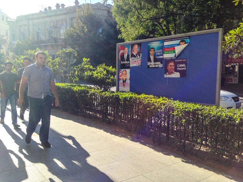 1. Стенд для предвыборной агитации рядом с Русским драматическим театром в Баку. 7 октября 2013 года.