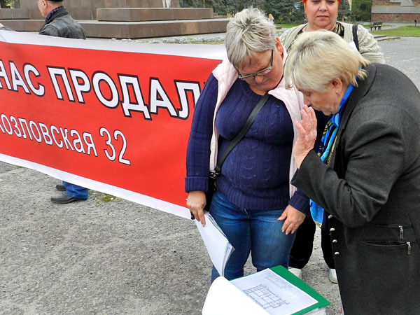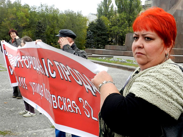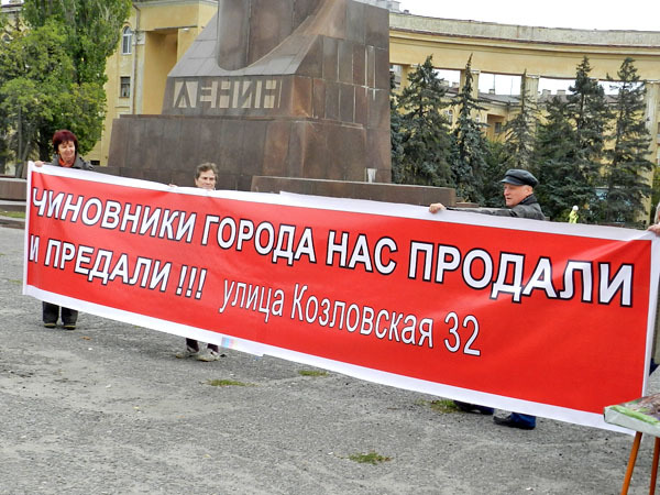 Пикет в защиту прав жильцов, проживающих по адресу Козловская, 32. Волгоград, 17 октября 2013 г. Фоторепортаж корреспондента "Кавказского узла" Татьяны Филимоновой