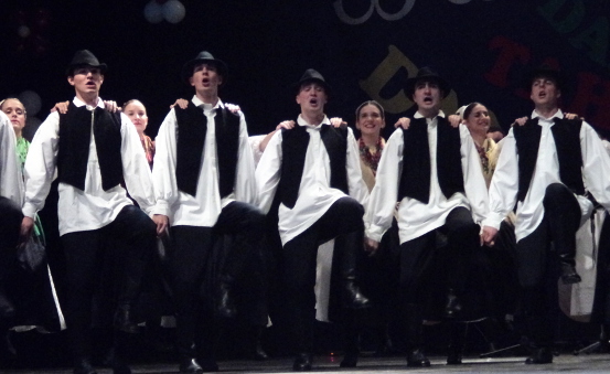 Танцоры молодежного ансамбля «Кавказ» (КБР) выступают на площадке перед Дворцом Профсоюзов.