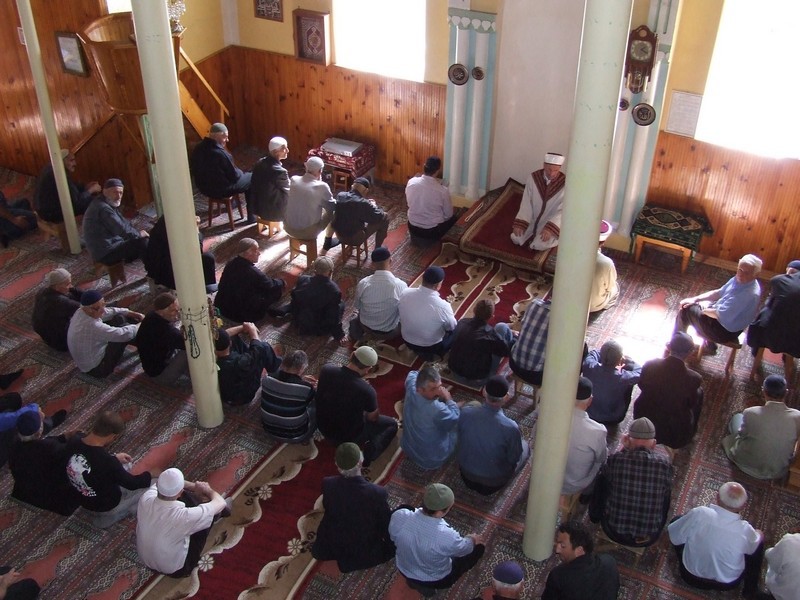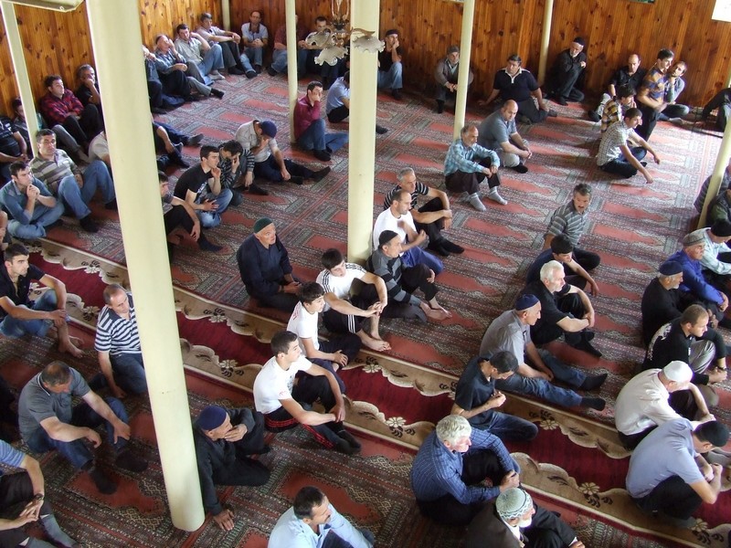 Пятничный намаз в мечети села Хуло. Слева - муфтий Хулойского района Гурам-Аслан Абашидзе.