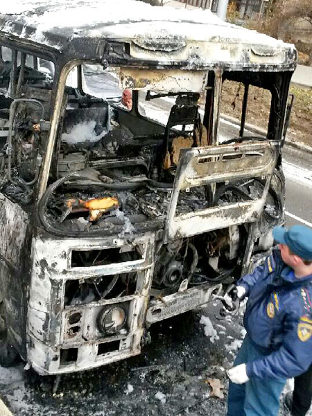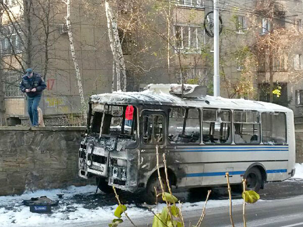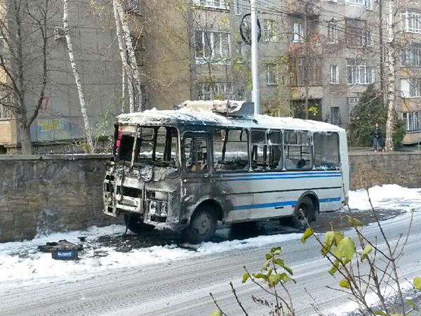 Автобус ПАЗ на перекрестке улиц Льва Толстого и Морозова. Ставрополь, 15 ноября 2013 г. Фоторепортаж корреспондента "Кавказского узла" Юлии Говорухи