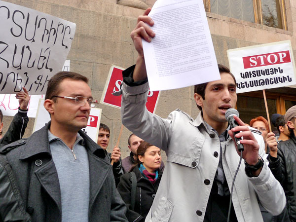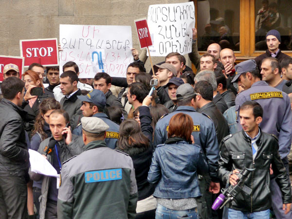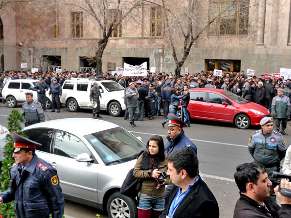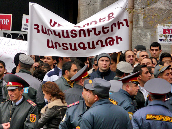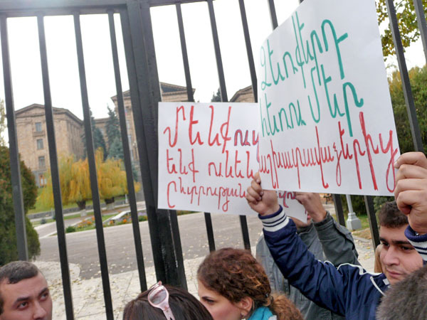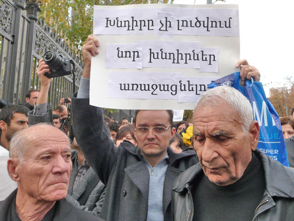 Участники акции протеста потребовали от властей Армении доработать реформу пенсионной системы, которую планируется ввести с января 2014 года. Ереван, 15 ноября 2013 г. Фоторепортаж корреспондента «Кавказского узла» Армине Мартиросян
