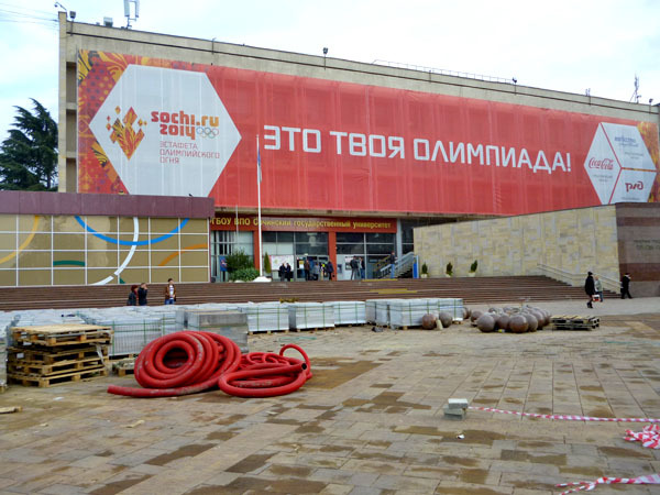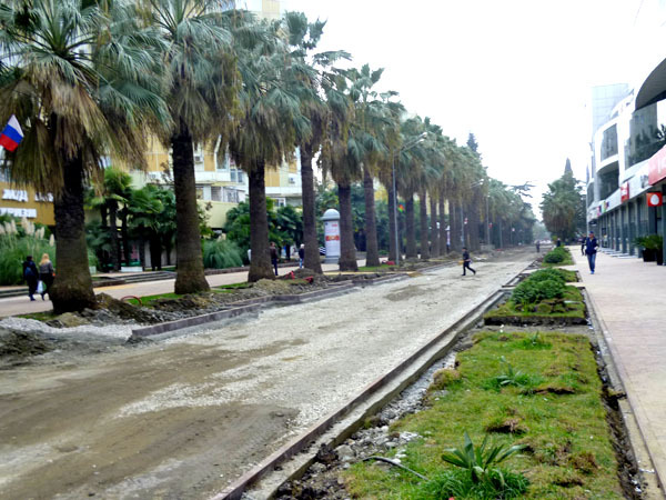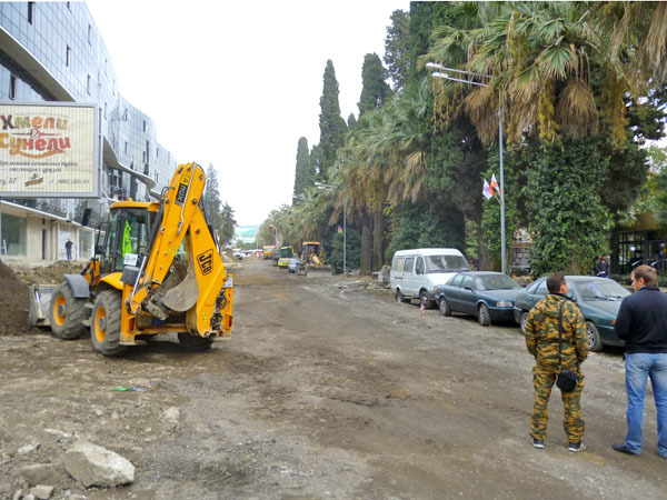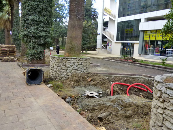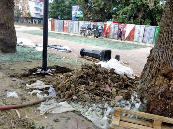 Строительные работы на улице Навагинская напротив администрации Центрального района в День города. Сочи, 21 ноября 2013 г. Фоторепортаж корреспондента "Кавказского узла" Светланы Кравченко