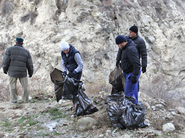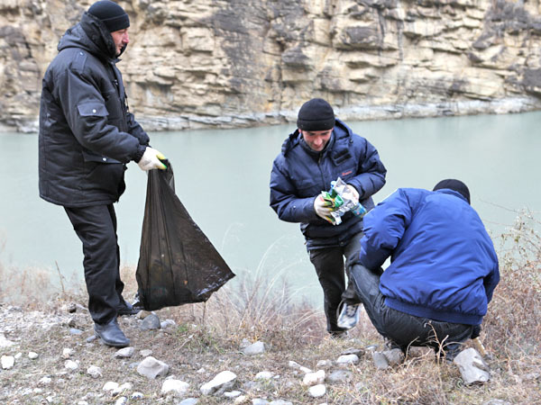 Акция по уборке русла реки Андийское Койсу в районе вершины Ахульго. Дагестан, 8 декабря 2013 г. Фоторепортаж корреспондента "Кавказского узла" Патимат Махмудовой
