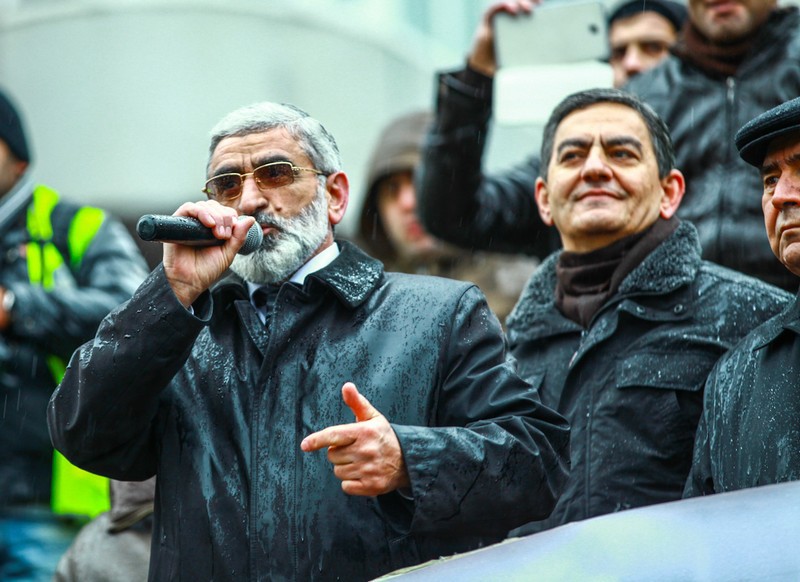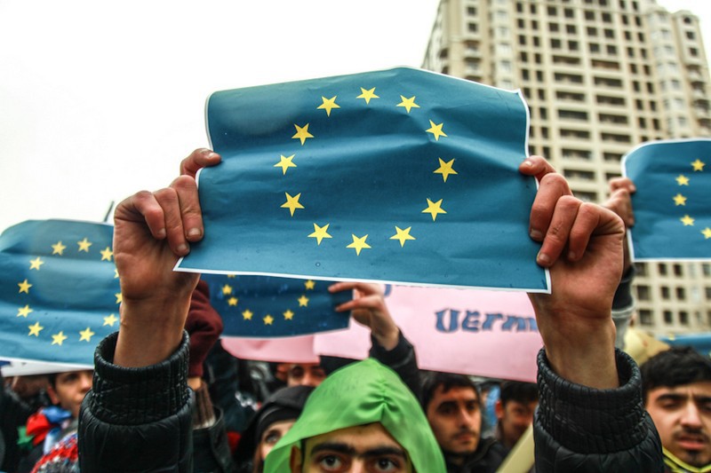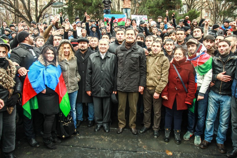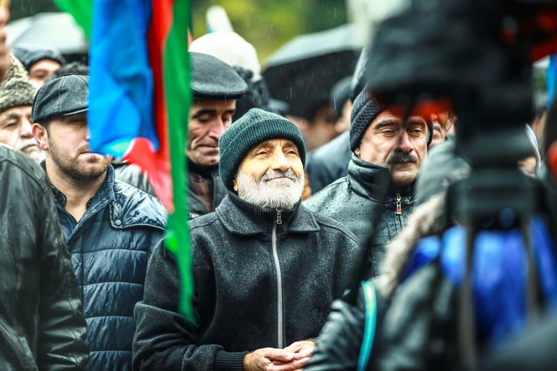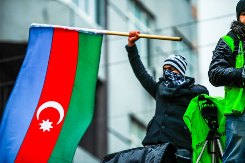 1. Участник митинга держит в руках флаг Азербайджана.