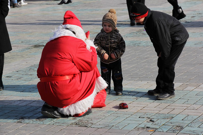 Разношерстные деды морозы дарят детям подарки (правда, родители потом за них платят, но незаметно).