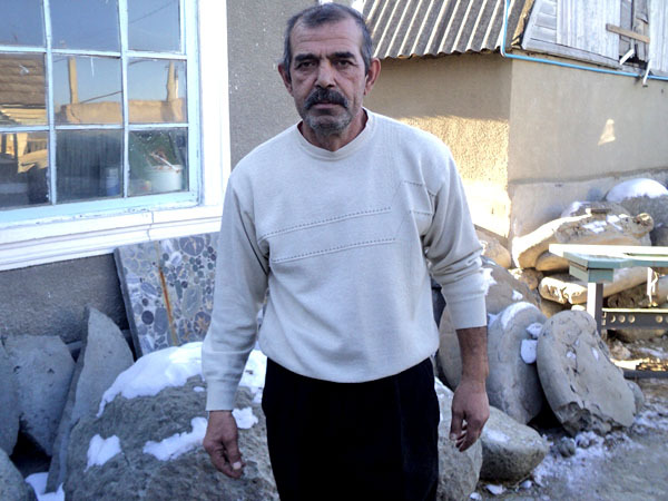 Житель селения Жанхотеко Кабардино-Балкарии Шамиль Жабелов собирает камни. Кабардино-Балкария, декабрь 2013 г. Фоторепортаж корреспондента "Кавказского узла" Луизы Оразаевой