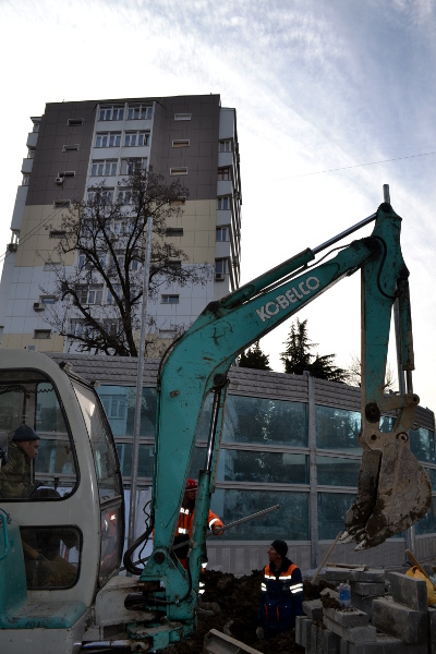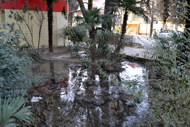 Прорыв канализации в районе строительства дороги-дублера Курортного проспекта у дома №66 по улице Гагарина. Фоторепортаж корреспондента "Кавказского узла " Светланы Кравченко от 12 января 2014 года.