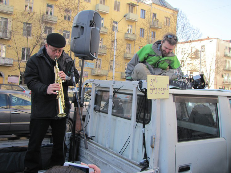 Митинг общественного движения «Партизанское озеленение Тбилиси»(Guerrilla Gardening Tbilisi)перед зданием столичной мэрии 10 января 2014 года. Фоторепортаж Марины Букия для "Кавказского узла".