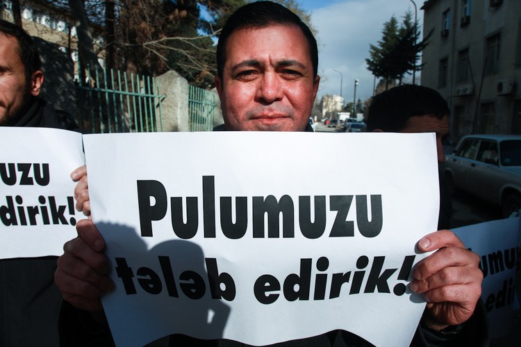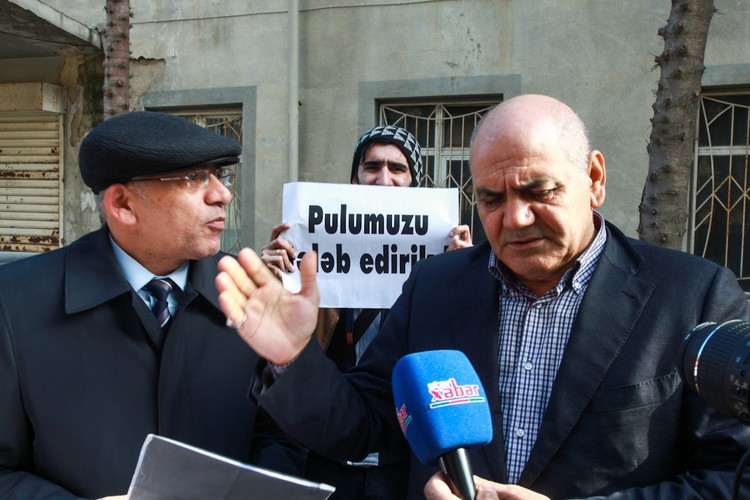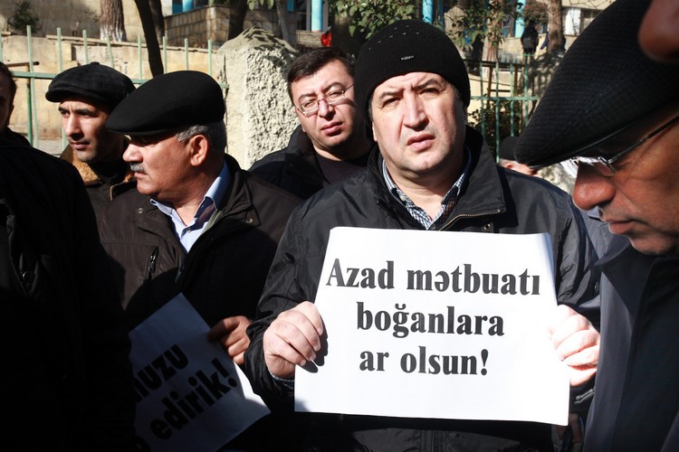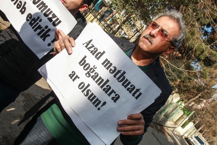 48. Пикет сотрудников газеты "Азадлыг" перед офисом государственной фирмы по распространению печати "Гасид". Баку, 22 января 2014 года. Фоторепортаж корреспондента "Кавказского узла" Азиза Каримова.