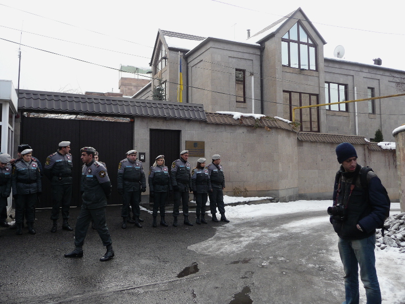 Участники акции в поддержку Евромайдана в Ереване собрались у посольства Украины.