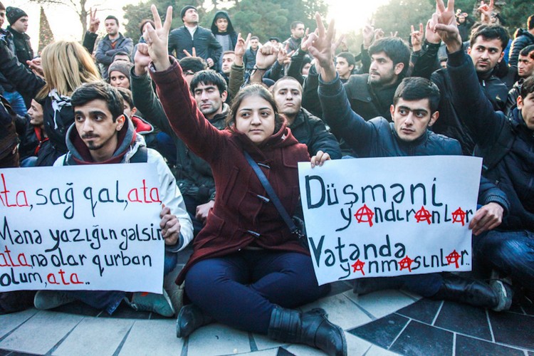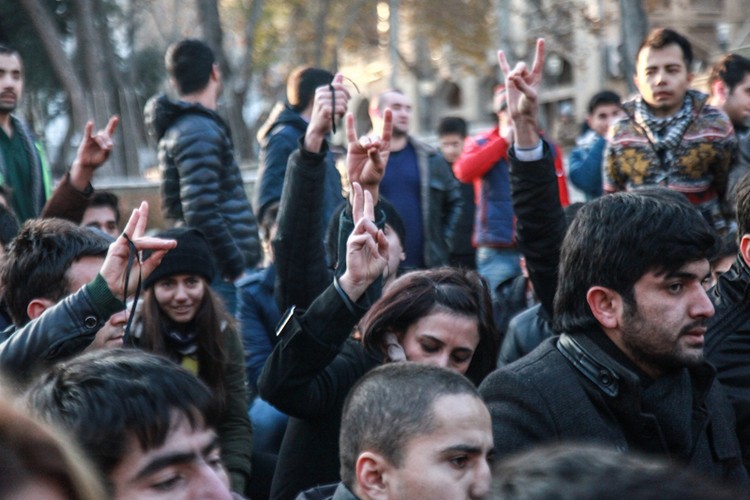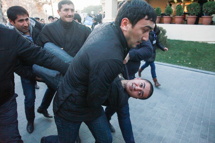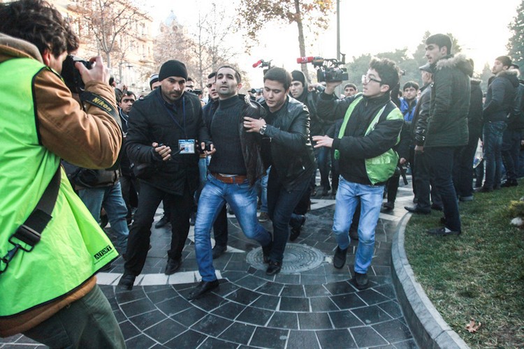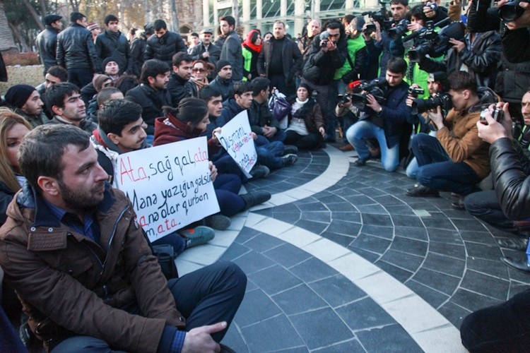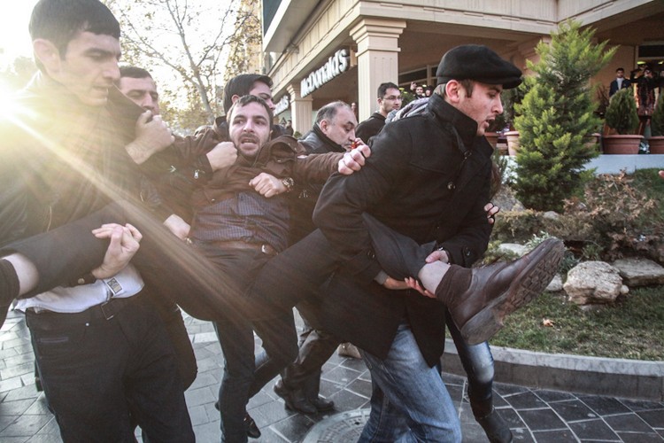 49. В Баку полиция разогнала акцию молодежи, протестующей в связи с гибелью ветерана Карабахской войны Заура Гасанова. Фоторепортаж корреспондента "Кавказского узла" Азиза Каримова от 29 декабря 2013 года.