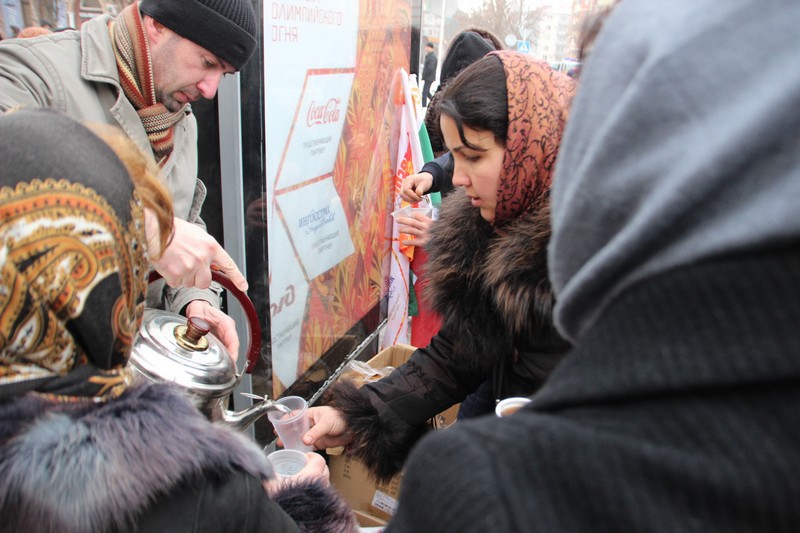 Всего в церемонии встречи огня Олимпиады приняли участие около 70 тысяч человек. Центр чеченской столицы с утра был блокирован усиленными нарядами полиции и военных, в городе введен режим “Стоп колеса”. Олимпийский огонь факелоносцы встретили в аэропорту “Грозный” и пронесли по центральным улицам чеченской столицы до стадиона “Ахмат-Арена” в Ленинском районе города. Чеченские власти сократили маршрут эстафеты олимпийского огня в республике с 34 до 16 километров. По всему маршруту следования эстафеты дежурят наряды полиции.